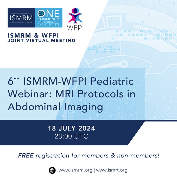 This webinar is part of the ISMRM-WFPI Pediatric MRI webinar series, an ongoing collaboration between ISMRM and the World Federation of Pediatric Imaging (WFPI). Together, these two organizations are uniting to improve the quality of and access to pediatric MRI globally through knowledge dissemination and networking.